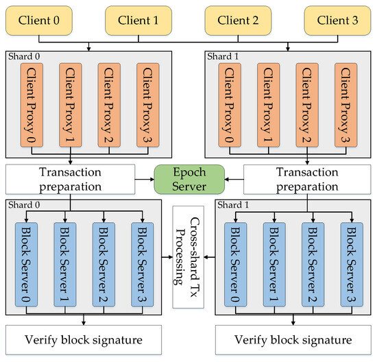 - Client proxy. The client proxy receives transactions involving its shard from clients. To determine which block the transactions belong to, it batches them and requests an epoch number from the epoch server. Each transaction is then assigned a globally unique transaction ID for deterministic intrablock ordering. The client proxy then uses atomic broadcast (e.g., PBFT or Raft) to exchange its transactions with other intrashard client proxies, ensuring the integrity and consistency of transactions. Notably, the client proxy acts as both the leader of the broadcast instance initiated by itself and as the follower of other broadcast instances initiated by other client proxies within the same shard.