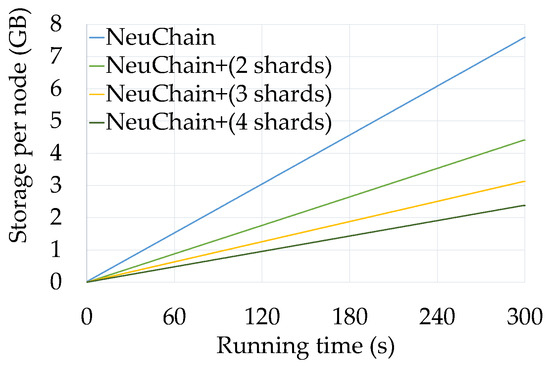- Summary of results. Experimental results show that NeuChain+ addresses the scalability issues of nonsharding and previous sharding blockchains. Under 16 nodes, the throughput was that of NeuChain, and the storage overhead was only 30.9% of NeuChain. Compared to Meepo, NeuChain+ in the situation of storage sharding in each node and nontrustworthiness among all nodes, achieved higher throughput and 61% lower latency. Compared with nonsharding blockchains under eight shards, NeuChain+ outperformed state-of-the-art blockchain systems with – throughput.