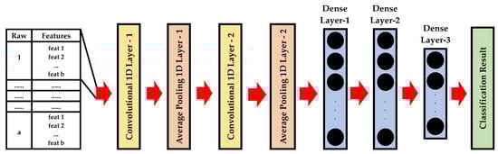 A convolutional neural network (CNN) is a network architecture for deep learning that learns directly from two-dimensional image input. As an end-to-end diagnostic model, it is understood from the literature that it achieves a higher performance at a lower cost [36]. A one-dimensional CNN (1D-CNN) has a less complex network structure and lower computational complexity than a two-dimensional CNN (2D-CNN) and accepts one-dimensional raw data as input directly without any preprocessing.