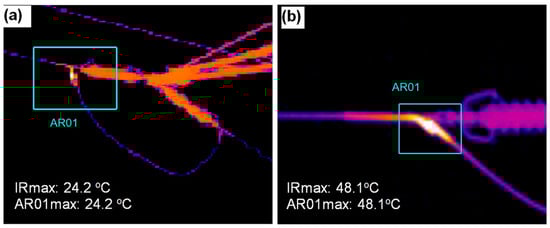 Wherever any cause generates heat, thermal imaging measurements become an indispensable diagnostic tool [,,]. Thermal imaging can be an effective method for tracking various processes whose course is associated with changes in emissivity or temperature over time or with variations in the thermal images of individual objects [,]. To assess, for example, the type of damage in electrical installation based on thermograms, it is additionally necessary to carry out numerous tests and comparative analyses. A comparison with X-ray methods comes to mind here, where, without being a specialist, it is not possible to properly interpret an X-ray image. In the field of thermal imaging measurements, as in X-ray, specialization is also required, considering the characteristics of the individual fields of application and the ability to perform examinations and interpret the results correctly [,].