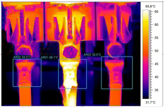 Some of the factors are independent of the device itself and related to the conditions of heat exchange. These factors can be external pollution, excessive ambient temperature, the obstruction of ventilation inlets, the presence of other hot objects, etc. It is not possible to include a full description of possible applications within the limited framework of this article. Some of these examples, particularly those related to electrical power engineering, are discussed in more detail below. The examples given are only a modest illustration of the area and it is to be believed that specialists in the respective fields of knowledge will be able to considerably expand the field of application of thermal imaging measurements. Furthermore, it should be emphasized that thermal imaging measurements are a complementary method to other diagnostic methods [,,] and, above all, cannot replace general and specific rules of conduct with electrical devices. Generally, the thermographic inspection only delivers information about possible malfunctions but does not protect against them. It should be applied in combination with operational and technical documentation of tested installations to prevent failures, fires, and losses [].