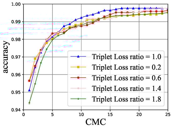 Input images are resized to in both the training and testing phase. The batch size for training is configured to 64. The distribution of images per category within each batch is adjusted based on the specific characteristics of the dataset being used. For instance, in the VeRi-776 dataset, the average number of images per vehicle identity is approximately , resulting in the selection of 16 random images for each vehicle identity per batch. In contrast, for the VehicleID dataset, each category is represented by four images within a batch.
