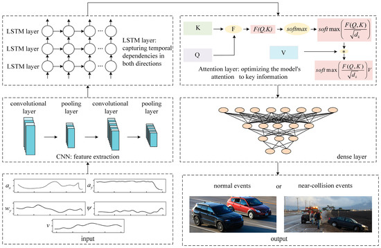 - A multilevel deep learning-based near-crash event identification model is proposed. This model integrates the convolutional neural network (CNN), the long short-term memory (LSTM) network, and the attention mechanism. The CNN-LSTM-Attention model utilizes the CNN layer to extract feature variables, captures the temporal correlation between feature variables through the LSTM layer, and employs the attention mechanism to assign different weights to each feature variable.