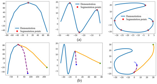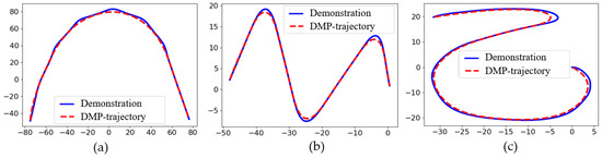 - Wang, R.; Wu, Y.; Chan, W.L.; Tee, K.P. Dynamic Movement Primitives Plus: For enhanced reproduction quality and efficient trajectory modification using truncated kernels and Local Biases. In Proceedings of the 2016 IEEE/RSJ International Conference on Intelligent Robots and Systems (IROS), Daejeon, Republic of Korea, 9–14 October 2016; pp. 3765–3771. [Google Scholar] [CrossRef]