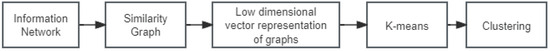 With the development of information networks, designing effective algorithms to construct information network graphs to represent their semantic information has become a focal research issue. Traditional methods [5,6] generally adopt high-dimensional sparse vectors, representing the structure and semantic information of information networks through adjacency matrices and involving the design of various application algorithms based on the above. However, high-dimensional sparse representation requires more computational space and time as the network scale increases, leading to poor scalability and accuracy in a graph structure.