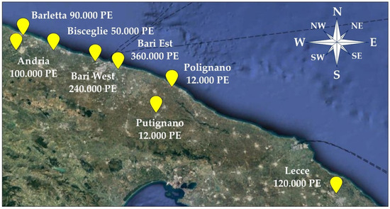 Geolocation of WWTPs located in the Apulia region, southern Italy.