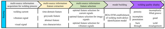 Sensor technology is a key element in achieving automation and intelligence in the welding process [2]. Addressing the limitations of single sensors in terms of comprehensiveness and reliability in process information acquisition, multi-sensor information fusion leverages the complementarity of different types of information sources. This approach enables a multi-angle, multi-faceted description of the welding process and its quality characteristics, thereby facilitating the improvement of the reliability and accuracy of welding defect identification and prediction [3]. Simultaneously, the increase in the number of sensors inevitably leads to a substantial rise in the dimensionality of feature spaces, creating “big data” of the welding process. Therefore, how eliminating redundant information and noise from large-scale raw data and establishing connections between effective process information and defect categories is of great importance for improving and perfecting online quality monitoring technology for the welding process.