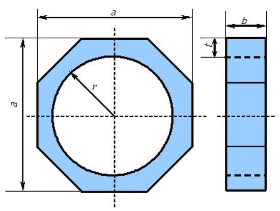 The values for stiffness for octagonal rings can be calculated according to different relations presented in technical papers. In [,,,], for longitudinal and transverse stiffness calculations, the following relations are presented: