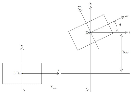 To analyze the dynamic behavior of the considered dynamometer, we considered that the upper plate has a combined motion in both directions, longitudinal and transverse, with an o twist motion. The longitudinal and transverse motions are defined by positions denoted with “x” and “y”, and the rotation is defined by the small angle “θ” (Figure 14).