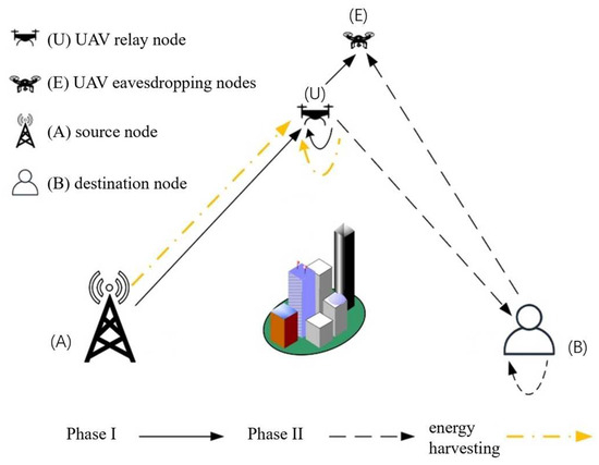5] because of their advantages, such as high mobility and low-cost networking. UAV signal transmission has line-of-sight link transmission and broadcasting characteristics, which will make the UAV communication system easier to eavesdrop on, therefore, how to guarantee the security of signal transmission has gradually become a hot issue in the study of UAV communication [