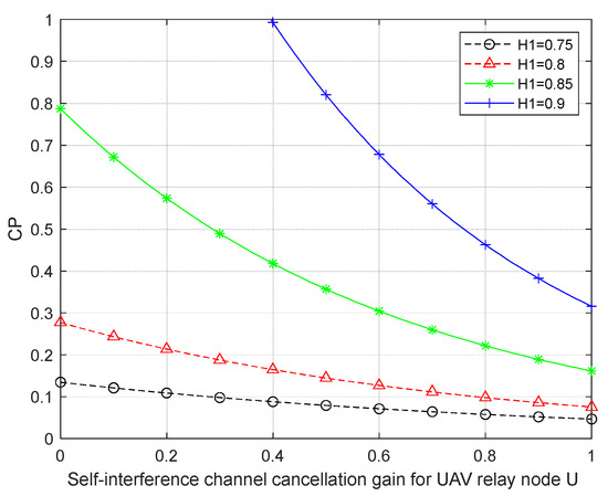 is certain, the CP increases as the self-interference channel gain of the UAV relay node U decreases. Because
