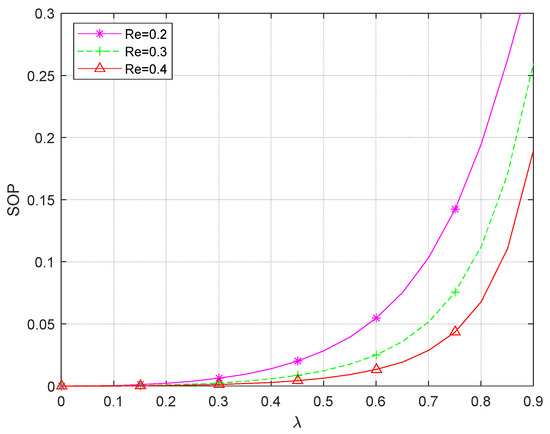 Figure 5 reveals the relationship between SOP and power allocation factor λ under different eavesdropping rate thresholds