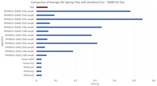 Comparison of average file signing time—10 MB file size.