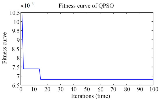 The changes in particle fitness with the increase in iterations of the QPSO-LSTM 2 model are shown in Figure 8. The particle fitness finally stabilized at 0.002972. After QPSO optimization of the LSTM 2 model hyperparameters, the final results are as shown in Figure 9 and Table 6, where the number of hidden layer neurons was La1 = 61, Lb1 = 80, the optimal iteration times of LSTM 1 was 99, and the optimal learning rate of LSTM 1 was 0.00977.