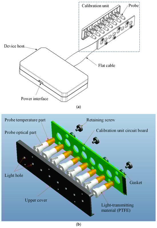 The structural design of the calibration device is illustrated in Figure 4, comprising a host and calibration units. The calibration unit consists of an upper cover plate, a circuit board, and eight probes.