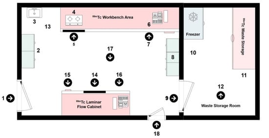 - Solanki, K. Operational Guidance on Hospital Radiopharmacy: A Safe and Effective Approach; International Atomic Energy Agency: Vienna, Austria, 2008. [Google Scholar]