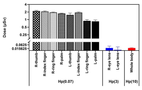 2.6. Personnel Dose Assessment from Radiation Exposure during Preparation and Handling of 99mTc-MDP Radiopharmaceutical