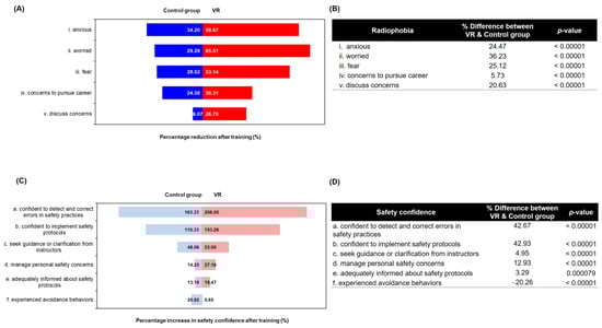 | Safety confidence | “You may fail, make mistakes, and learn from them.” “VR…It’s building my confidence through providing a secure environment conducive to experimentation and trial and error.” “I am not so scared of working in the hot lab.” | 7 | 70 | |
