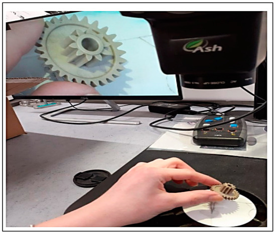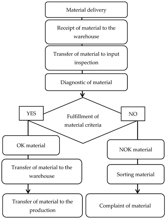 The incoming inspection of materials and components for the automotive industry is a basic prerequisite for the production of quality cars without errors and defects. The use of diagnostic methods in monitoring the quality of components is the basis for receiving material from the supplier and using it in production. The input inspection checks compliance with the requirements of the STN (Slovak technical standard) and with the requirements stated in the material order. This activity checks the condition of surface defects, scratches, cracks, and other mistakes. The input control describes a gear wheel on which surface defects are detected on materials (Figure 5).