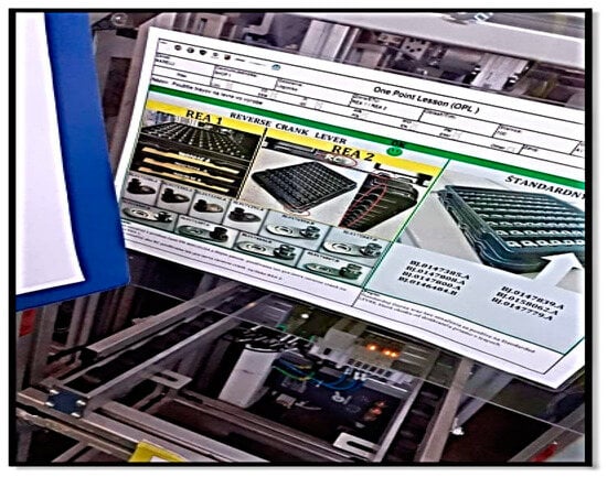 Work procedures and their compliance are also an important part of production, so it was necessary to design an OPL (Figure 10)—a tool that visually presents the instructions and tools used to perform tasks at the production line. This tool is used for training and informing employees about correct work procedures and compliance with standards.