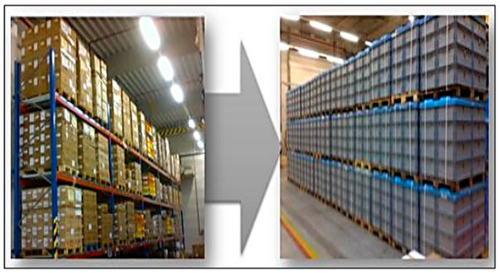 The fourth process, product packaging, focused on reusing packaging and reducing packaging waste. Cardboard packaging in the production process was replaced by returnable plastic packaging (Figure 14), which reduced the amount of waste and resulted in more efficient use of resources. This change of the material packaging meant an increase in marketing costs of 1600 €, which was determined in the promotion process. The marketing costs increased, but on the other hand, the packaging process improved and packaging waste decreased. This change was seen in the profit statement, in the item costs decreasing about 20%. In terms of amount, this means packaging waste reduced from 90,869 tons to 73,153 tons.