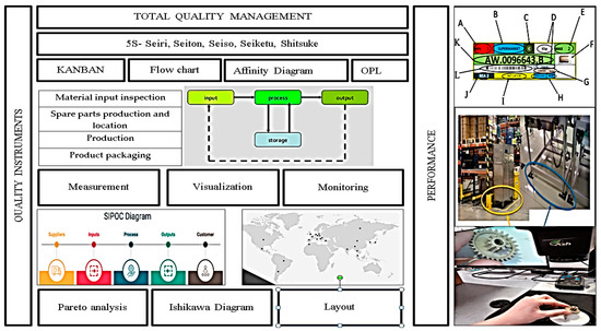 Toyota coined the phrase “Lean Manufacturing” to remove waste or non-value-added operations from a manufacturing process. Positive benefits have been established in achieving production efficiency and reducing waste through the implementation of lean manufacturing techniques such as the 5S method. Shahriar et al. (2022) wrote that the lean manufacturing concept brings benefits in the area of ‘waiting’. The recommendation of the research was to use 5S, a lean manufacturing strategy, for reducing downtime. After implementation of 5S, the total operational time was reduced by 8% [38]. An important part of implementing quality instruments is the integration of the monitoring and visualization system as an instrument for the valuation of the quality of processes [39].