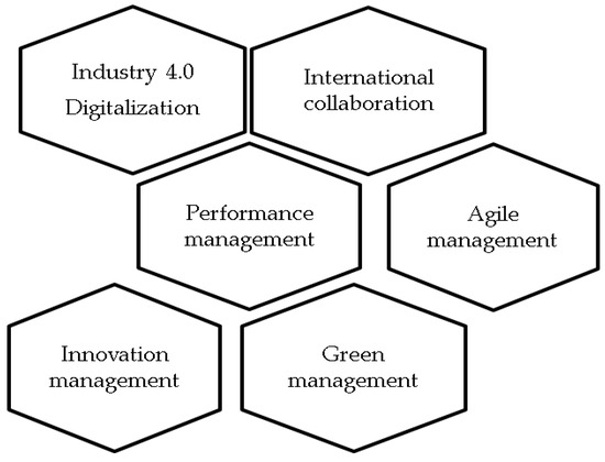 The first step is using digitalization, which makes documentation and evidence easier in each process. Potkány et al. (2012) wrote that the database of information on the processes creates the basis for performance management and the fulfillment of strategic goals. The database comprises a system of calculation and the budgeting of processes. This approach influences demand [54]. Part of innovation in processes is a quick response to changes: agile management, in the international market; international business collaboration, in the scientific field; and innovation management, in the environmental field and green management. Menon et al. (2022) noted that sustainable manufacturing is revolutionizing the industry’s operation framework to optimize processes, increase productivity, and eliminate waste. Sustainable manufacturing has evolved from theory- and principle-based models to technology-driven functioning. Integrating automated control tools into conventional manufacturing methodologies has significantly increased overall performance, productivity, and output. Moreover, cost optimization and efficient consumption of resources are increasingly achieved, and most industries are shifting gradually towards sustainable manufacturing [55]. Digitalization in manufacturing contributes to environmental sustainability by boosting resource and information efficiency. Manufacturing and logistics operations intelligently linked across industry lines result in greater efficiency and an adaptive real-time lean manufacturing environment. A suitable combination of quality tools enables the connection of individual forms of management and affects the base frame of the company’s growth, namely in the added value that is reflected in innovations.