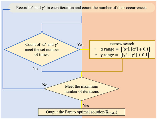 Once the identified and values converge to the specific values which are most frequently found, the search range for α and γ values contracts, triggering automatic switching, as depicted in Figure 7. By executing a fresh search and update within this narrowed range, the method not only hastens convergence but also determines more precise α and γ values. It balances network latency and energy consumption by optimizing task-offloading decisions. This research employs a multi-objective bat algorithm to negotiate solutions in multi-objective functions. It employs SARSA reinforcement learning to adjust hyperparameters dynamically, eliminating the necessity for intricate hyperparameter experiments. The enhanced MOBA-CV-SARSA-DA can accurately identify suitable parameter ranges.