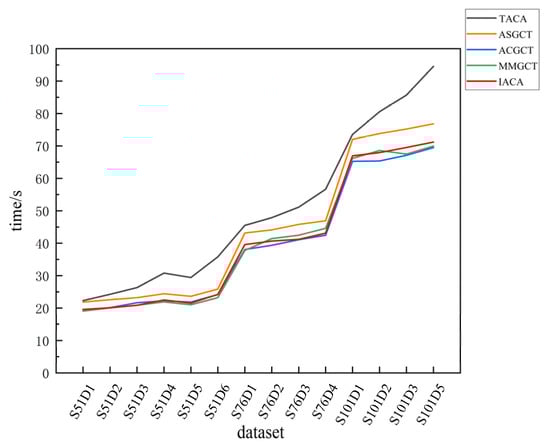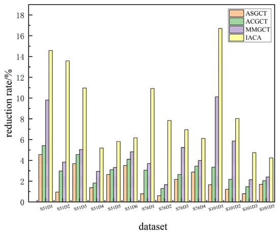 A comparison of algorithm running times is shown in Table 13. In addition, we calculated the reduction rate of the running time for other algorithms based on TACA, as shown in Table 14.