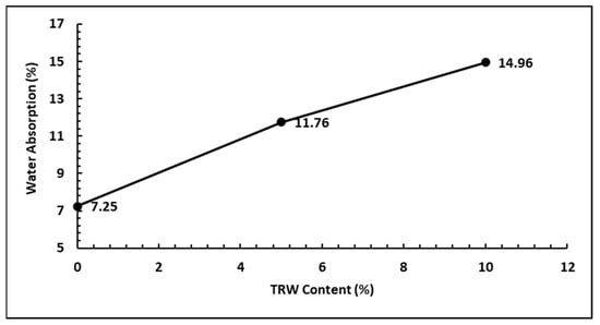 - WA tests performed on the samples showed that the bricks met the <20% standard requirements for WA. The WA values recorded for the bricks that contained 0, 5, and 10% TRW were 7.25, 11.76, and 14.96%, respectively.