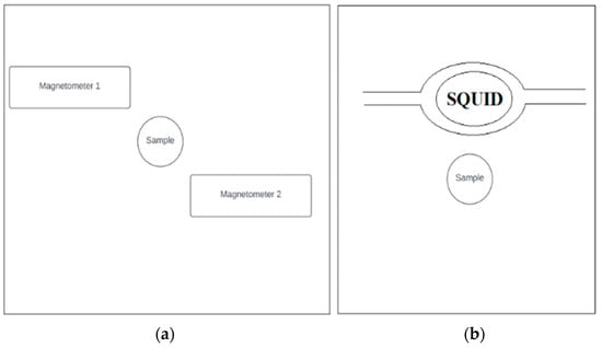 (a) The differential fluxgate measurement system, (b) The SQUID measurement system [20].