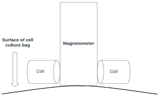 In [42], the magnetorelaxometry method has been applied for nanoparticle properties detection, while two magnetometers in differential fluxgate topology have been utilized. Moreover, Helmholtz coils are used instead of field coils, which can produce a homogeneous magnetic field in large samples. In [45], a fluxgate scanner that uses the magnetic relaxation imaging method is presented for the characterization of cell culture bag nanoparticles of immune cells. The schematic diagram of the setup is depicted in Figure 7. In [47], fluxgate magnetometers are used for nanoparticle characterization with the magnetorelaxometry method and the results are compared with those of a SQUID instead of the fluxgate magnetometer. In [110], a fundamental mode orthogonal fluxgate magnetometer is used for magnetorelaxometry purposes in an environment without shielding. In [121], the first fluxgate magnetometer that contains an inkjet-printed core is presented. This device is characterized by a wide open-loop linear range, enables the fully automatic manufacture process of the core, and offers the capability to manufacture the magnetometer on a substrate of arbitrary shape. The sensor, however, is characterized by small sensitivity.