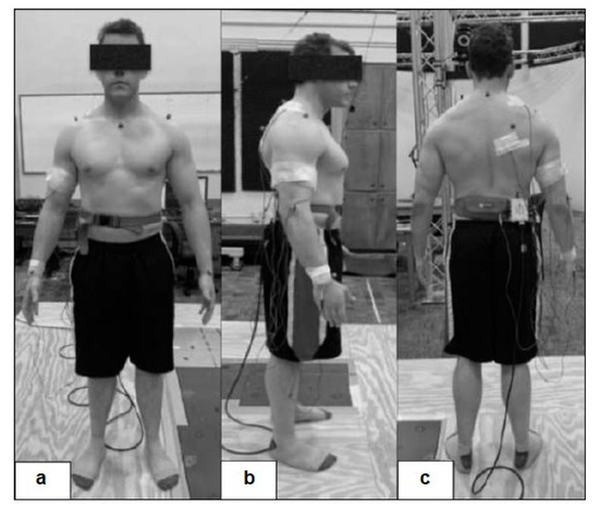 Kinematics: A 10-camera motion capture system (VICON Motion Systems Ltd., Oxford, UK) was used to record the upper-body kinematics. Participants were prepared for testing with nine small, spherical reflective motion capture markers placed along each arm and shoulder area based on the upper-body modeling (Vicon Nexus 2.12) with Plug-in-Gait (Vicon Motion System, Oxford Metrics Group Ltd., Oxford, UK): C7, right back over the scapula, sternum, both AC joints, both elbows (lateral epicondyle of the humerus), and medial surface of both wrists at the ulna (see