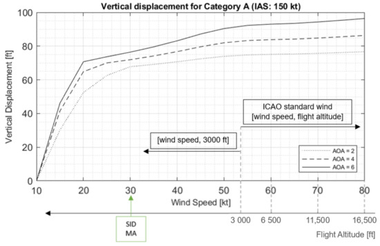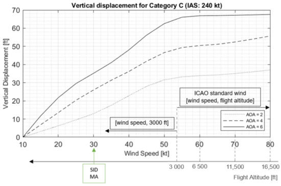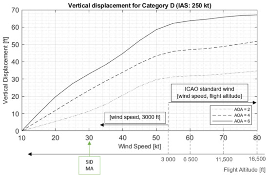 It should be noted that the angle of attack varies depending on the phase of flight, that is, whether the aircraft is performing departure, arrival, holding, approach, or en-route procedures. Therefore, the phase of flight also affects the lift coefficient and, thus, the vertical displacement of the aircraft.