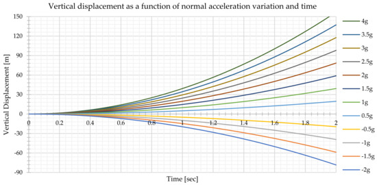 The normal acceleration experienced by the aircraft also varies as a function of the turbulence intensity and is directly related to the load factor variation, being the product of the load factor and gravity.