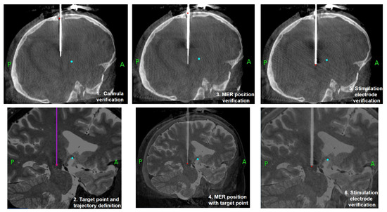- Vinke, R.S.; Selvaraj, A.K.; Geerlings, M.; Georgiev, D.; Sadikov, A.; Kubben, P.L.; Doorduin, J.; Praamstra, P.; Bloem, B.R.; Bartels, R.H.; et al. The Role of Microelectrode Recording and Stereotactic Computed Tomography in Verifying Lead Placement during Awake MRI-Guided Subthalamic Nucleus Deep Brain Stimulation for Parkinson’s Disease. J. Park. Dis. 2022, 12, 1269–1278. [Google Scholar] [CrossRef]