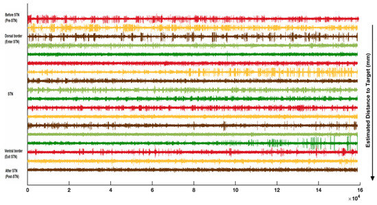 - Valsky, D.; Marmor-Levin, O.; Deffains, M.; Eitan, R.; Blackwell, K.T.; Bergman, H.; Israel, Z. Stop! border ahead: A utomatic detection of subthalamic exit during deep brain stimulation surgery. Mov. Disord. 2017, 32, 70–79. [Google Scholar] [CrossRef] [PubMed]