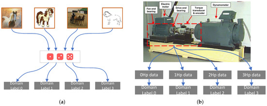 The most important difference between the fault diagnosis scenario described in this paper and the common domain generalization situation is that for , the domain number has physical meaning (actual horsepower of the bearing). In the example shown in Figure 1, the domain transfer dataset used in Figure 1a is a collection of images in different styles, and the domain labels contain no information, only a label. However, for the CWRU bearing dataset shown in Figure 1b, the domain labels in the bearing dataset represent the rotor load of the bearing during operation. Therefore, we can obtain some additional information from the domain number of the source domain data and the target domain data and use it in the domain generalization. As a result, we introduce a new domain generalization scenario called Load-Domain(LD) domain generalization to describe this special scenario.