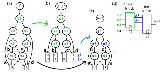 - Rawski, M.; Jozwiak, L.; Nowicka, M.; Luba, T. Non-Disjoint Decomposition of Boolean Functions and Its Application in FPGA-Oriented Technology Mapping. In Proceedings of the 23rd EUROMICRO Conference: New Frontiers of Information Technology (Cat. No. 97TB100167), Budapest, Hungary, 1–4 September 1997; IEEE: Piscataway, NJ, USA, 1997; pp. 24–30. [Google Scholar]