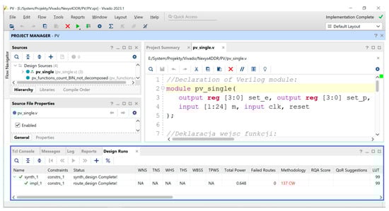 - Proposition of a photovoltaic control system as a case study of the presented prototyping flow. The applied system reflects the real-life concurrent control system further optimized and implemented within the FPGA device.