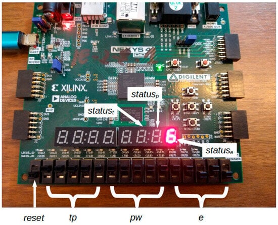 It should be noted that the transformation process can be automated. There exist tools that permit the conversion of a Petri net-based description to hardware description languages, either VHDL (e.g., IOPT-Tools [83]) or Verilog (e.g., Hippo tool [19,20,88]). Therefore, the designer is not forced to know technical details nor advanced mechanisms in regard to the particular hardware language.