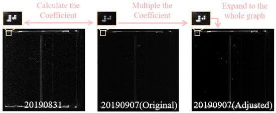 The coefficient adjustment flowchart: Choose an image as the standard, unify the brightness and contrast of other Braille markers, calculate the adjustment coefficient, and use it to adjust the entire images.