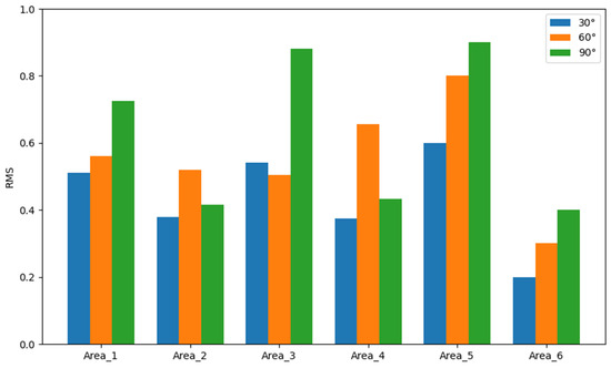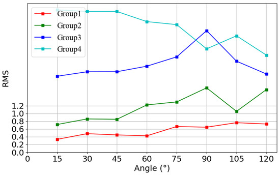 Figure 4 and Table 11 demonstrate that group 1 consistently has the smallest RMS across all rotational angles. The maximum value in group 3, 3.134, is 3.11 times higher than the maximum value in group 1, which is 0.762; the maximum value in group 4, 3.674, exceeds the maximum in group 1 by 3.82 times. These results validate that the subjective assignment of label importance in Section 3 is reasonable.