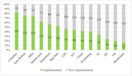 - Frank, A.G.; Dalenogare, L.S.; Ayala, N.F. Industry 4.0 technologies: Implementation patterns in manufacturing companies. Int. J. Prod. Econ. 2019, 210, 15–26. [Google Scholar] [CrossRef]