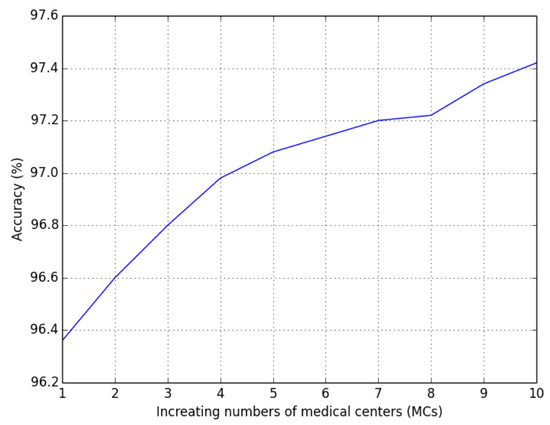Impact of Number of : The test accuracy was measured by increasing the number of involved in collaborative training. The experiments were run with different numbers of from 1 to 10. Figure 4 shows that the more participate, the higher the training accuracy.