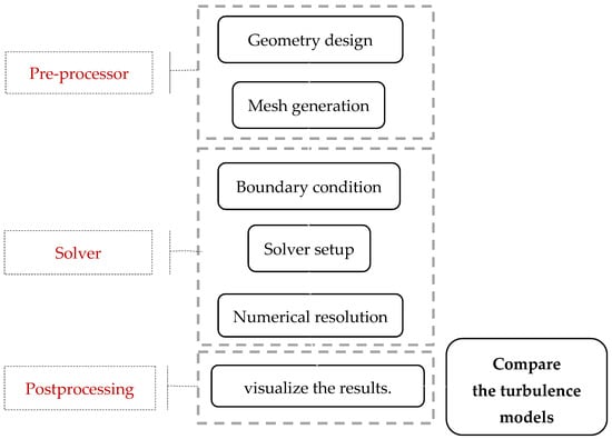 CFD analysis is a numerical technique used to simulate and analyze the behavior of fluid flow and related physical phenomena using computational methods and algorithms (e.g., Blocken et al. [16] and Sunny and Krishnaraj [17]). It involves the discretization of the governing equations of fluid mechanics, such as the Navier–Stokes equations, into a set of algebraic equations that can be solved numerically using numerical simulation software ANSYS V23 R2.