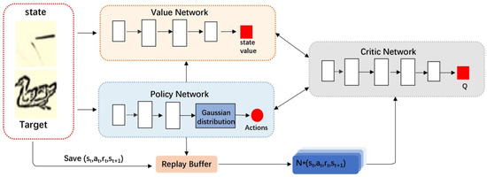 The overall framework of our proposed algorithm is shown in Figure 2. This framework consists of a renderer, an actor, and a critic. The actor’s role is to determine the next action by considering both the target image and the canvas’s current state. Meanwhile, the critic evaluates these actions by scoring the decision plan in relation to the canvas’s present condition. The renderer is responsible for simulating the robot’s painting on the canvas and executing the decision-making scheme suggested by the actor.