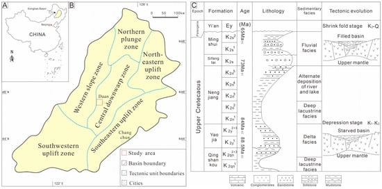 - Liu, Z.J.; Wang, D.P.; Liu, L.; Liu, W.Z.; Wang, P.J.; Du, X.D.; Yang, G. Sedimentary characteristics of the Cretaceous period in the Songliao Basin. J. Geol. 1992, 6, 327–338. [Google Scholar]