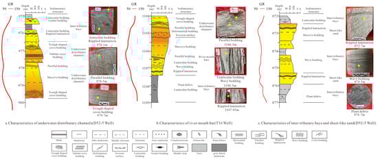 - Sun, Z.X.; Zhang, Y.N.; Liu, C.L.; Li, M.G. Sedimentary characteristics of shallow water deltas and their significance for oil and gas exploration. J. Pet. Nat. Gas 2012, 34, 161–165+3. [Google Scholar]