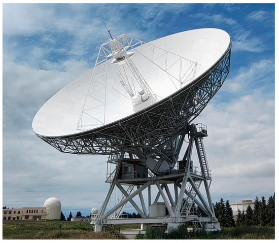 - Tarchi, D.; Comoretto, G. Holographic measurement on Medicina radio telescope using artificial satellites at 11 GHz. Astron. Astrophys. 1993, 275, 679. [Google Scholar]